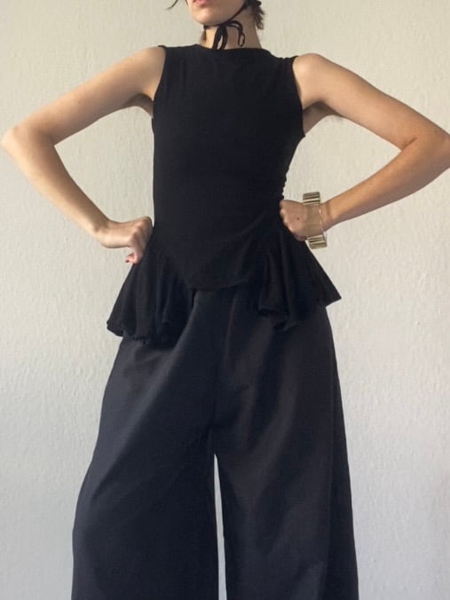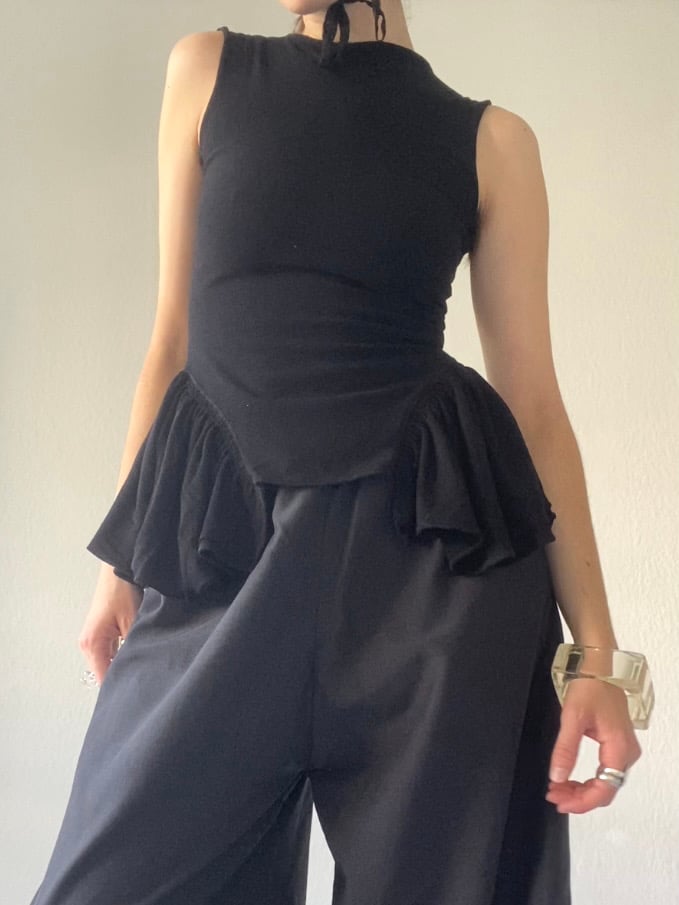 The Faulds Vest takes it name from the hip covering plates in medieval armour, replicating the placement and playfully accentuating the silhouette of the hips. Made from cotton jersey it is double layer for support and structure.